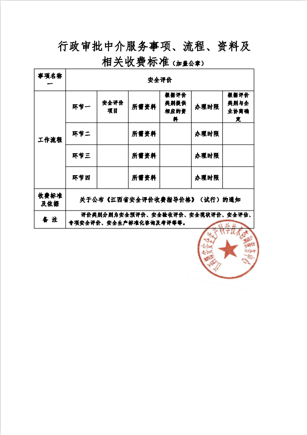 行政審批中介服務事項、流程、資料及相關收費標準