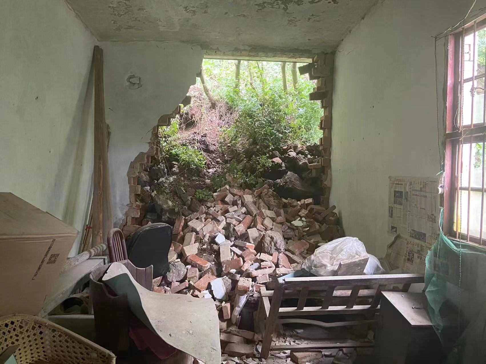 近期,彭澤縣多發(fā)短時(shí)強(qiáng)降雨,7月17日19時(shí),群測(cè)群防員孔某照例對(duì)龍城鎮(zhèn)沿江社區(qū)住戶艾某屋后滑坡隱患點(diǎn)進(jìn)行巡查,發(fā)現(xiàn)其屋后塊石擋墻上方的樹木歪斜,樹根松動(dòng),根據(jù)多年的巡查監(jiān)測(cè)經(jīng)驗(yàn),孔某立即將情況上報(bào)至龍城鎮(zhèn)政府,鎮(zhèn)政府連夜組織受威脅群眾撤離,共轉(zhuǎn)移2戶5人。7月18日9時(shí),艾某屋后發(fā)生滑坡,滑坡導(dǎo)致樹木倒塌,屋后擋墻被沖毀,大量泥土沖進(jìn)房屋致房屋嚴(yán)重受損,因避讓及時(shí),沒有造成人員傷亡。