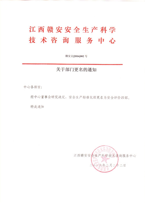 關(guān)于部門更名的通知